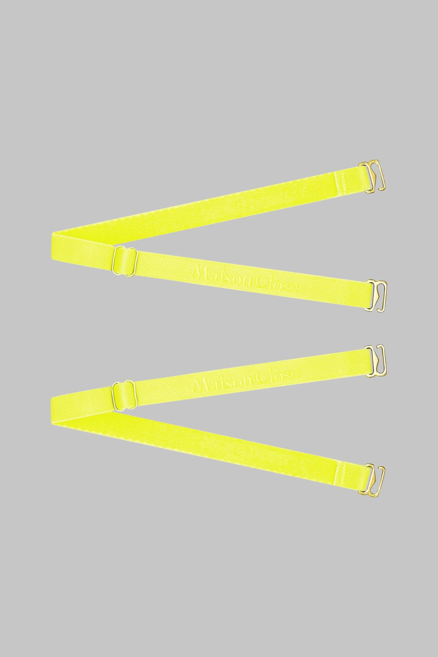 Deux élastiques string Signature néon amovibles et réglables aux finitions dorées. A jouer avec les autres Signature disponibles dans plusieurs coloris. L’occasion pour chaque Muse de créer son mix and match survitaminé.